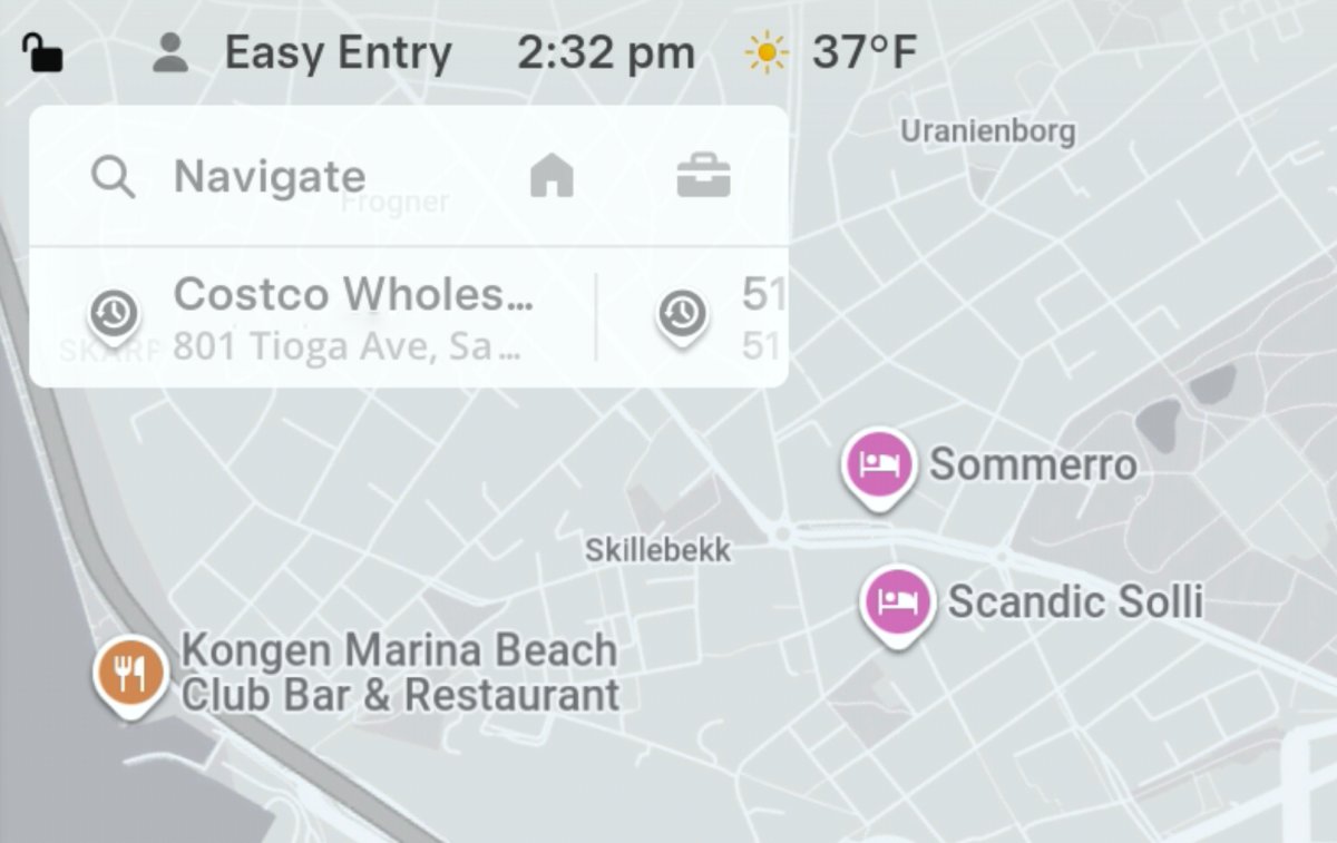 Tesla a aussi modifié le bouton "Naviguer" lorsque vous êtes garé. Les icônes "Domicile" et "Travail" sont maintenant sur la même ligne, et en dessous, vous avez désormais deux suggestions basées sur votre emplacement et l'heure de la journée.